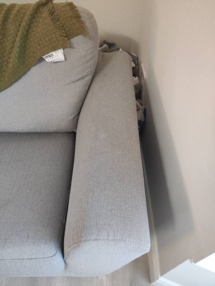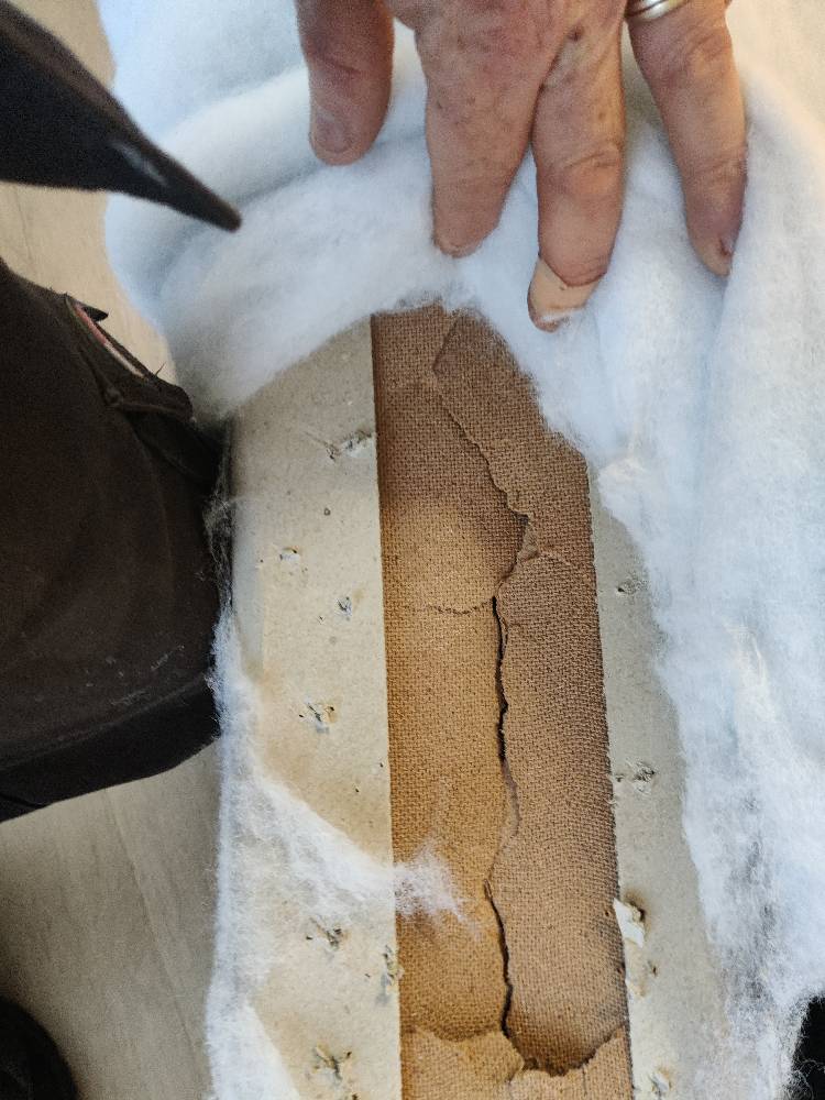 The customer reported that the support card inside one of the armrests had collapsed into the frame, causing a visible indentation in the fabric.